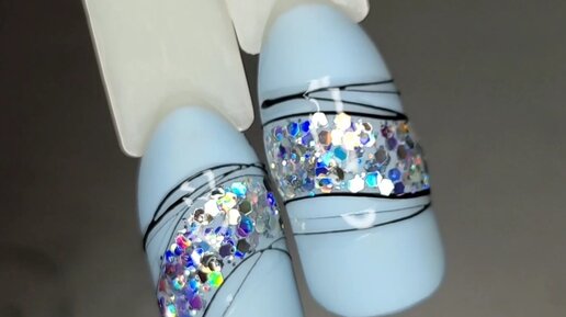 Нежно-голубой маникюр с блëстками 2 идеи для дизайна