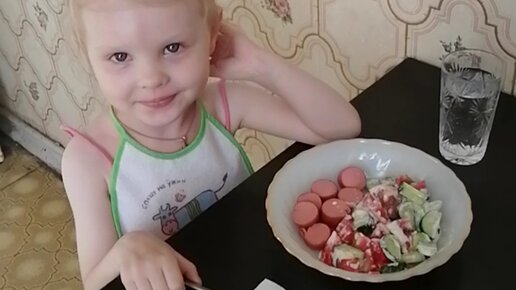 Мукбанг от Сони//Сосиски//Овощной салат со сметаной