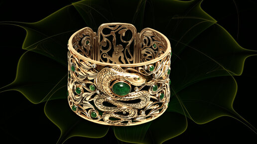 Роскошный авторский золотой браслет Джунгли из золота с изумрудами и бриллиантами
