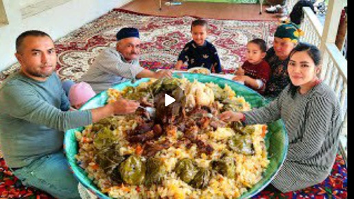 Настоящие узбекские ПЛОВ с виноградными листьями | Tok oshi | Uzbek pilaf with grape leaves
