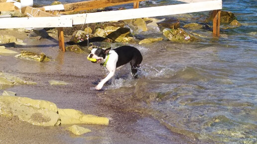 Бульдожка - супер пловец, которого не страшат волны и ветер в море