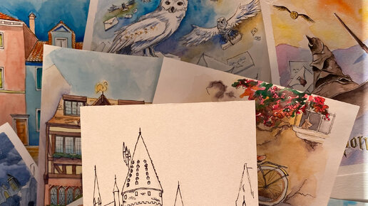Акварельный рисунок Хогвартса. Часть 1.