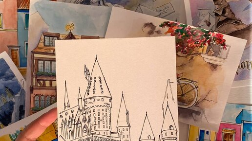 Акварельный рисунок Хогвартса. Часть 2