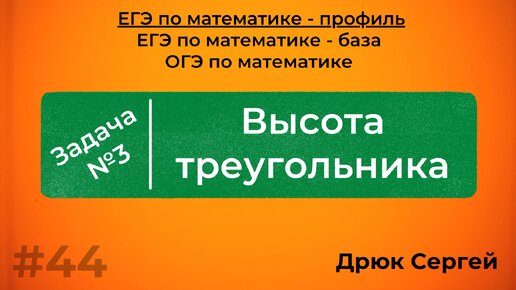 Высота треугольника - Разбор №3 из ЕГЭ по математике | #44 |