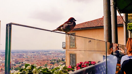 Поднимаемся в Верхний Бергамо в кафе с видом на город. Вкусный завтрак на любой вкус туриста и захватывающий вид с террасы