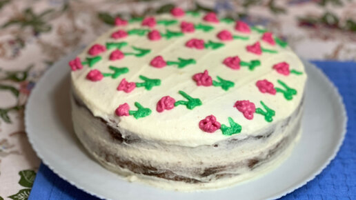 Бисквитный торт с творожным кремом «Цветочная поляна»