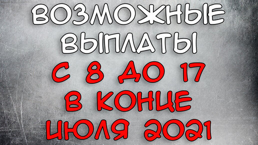 Возможные Выплаты с 8 до 17 в конце Июля 2021