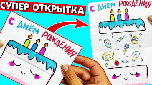 Супер Крутая ОТКРЫТКА на День Рождения своими руками DIY. Рисунки Юльки