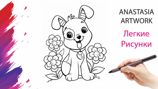 Как Нарисовать Щеночка С Цветочками | Легкие Рисунки #42