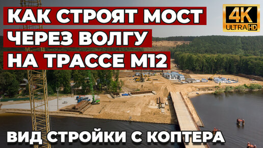 Как строят большой мост через Волгу на трассе М12. Видео с коптера