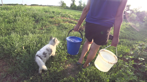 Жаркий день для питомцев в деревне. Собаки хаски.