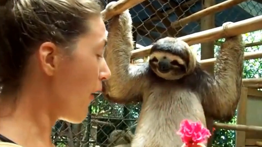 Подборка трогательных моментов с животными. Ленивец очень обрадовался цветочку! Панды мило встречают свою любимую подругу..