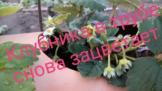 Клубника в трубах снова зацветает. Эксперимент продолжается.