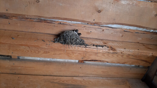 Ласточки свили гнездо над входом и уже появились птенцы..