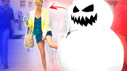 Огромный ЗЛОЙ снеговик ПУГАЕТ прохожих / Приколы