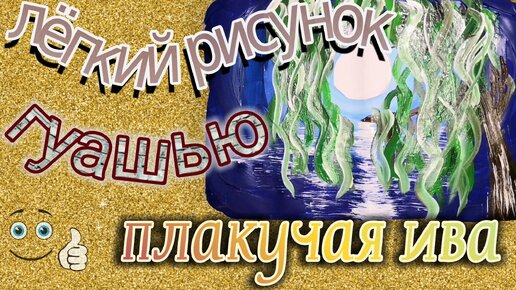 рисую иву на фоне заката/легкий рисунок красками гуашь