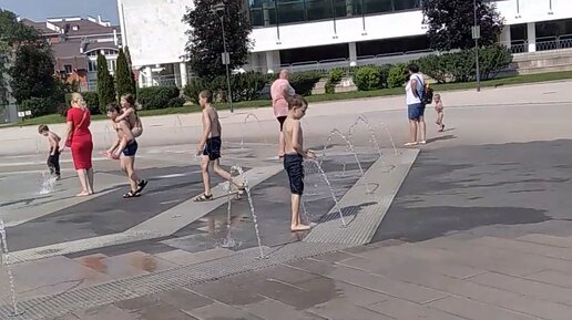 Сейчас жара, все и старые, и малые плохо ее переносят. Спасение только около фонтанов, где вода.
