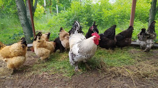 Как спят куры. Завтрак нашего куриного хозяйства. Подросли породистые курочки.