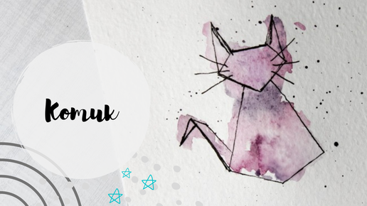 Котик - оригами акварелью