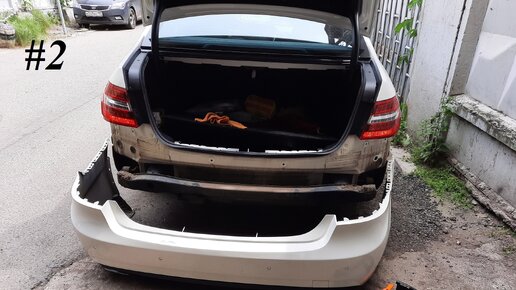 Mersedes E300 W212. Подготовка заднего бампера к работе. Повреждения
