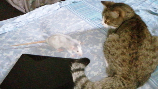 Опасные игры🙀 Крысенок Пуся дразнит кошку Пушу