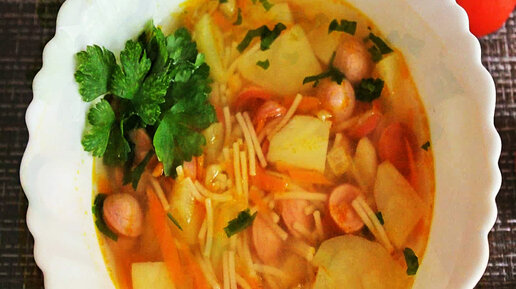 Быстрый и Вкусный Суп с Сосисками и вермишелью.