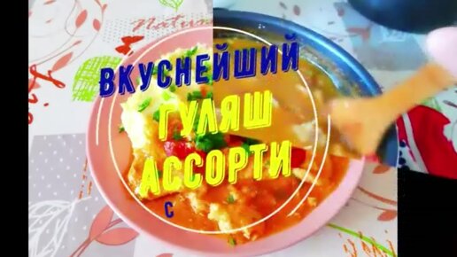 Вкуснейший гуляш-ассорти с картофельным пюре.