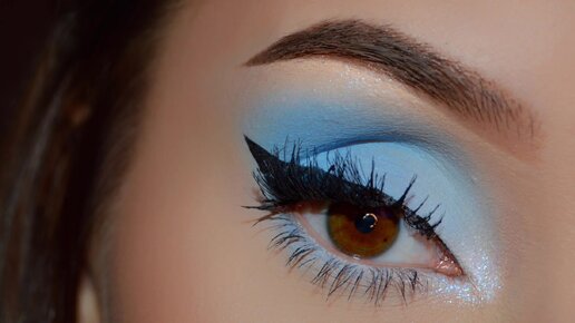 Ещё один макияж в матовых голубых оттенках с затемнённым уголком и эффектной стрелкой