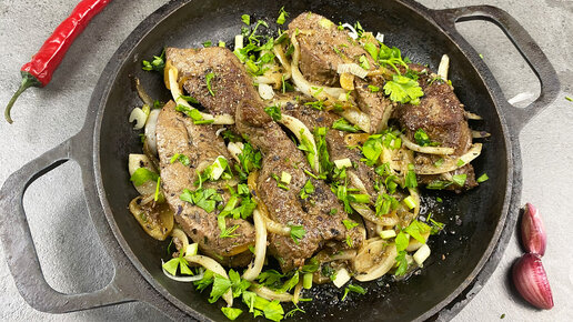 Баранья печень с луком и зеленью по-кавказски