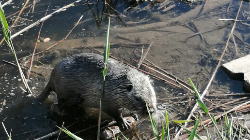 Пошли покормить уточек, а на нас такое чудо выбралось из воды
