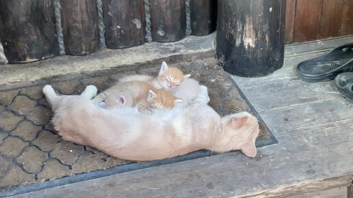Кошка кормит маленьких котят. Мамино молоко самое вкусное
