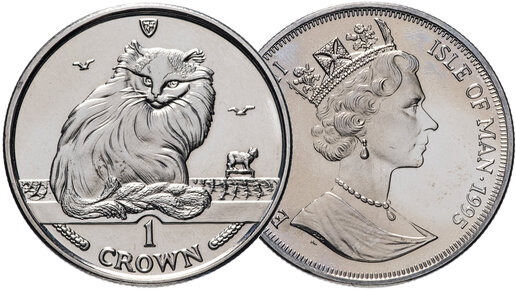 Монета 1 крона Острова Мэн 1995 года. Кошка Турецкая Ангора.