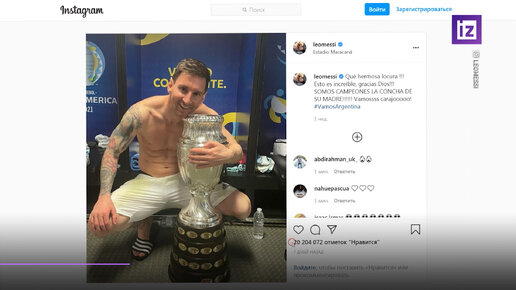 Месси побил рекорд Роналду по числу лайков под фотографией