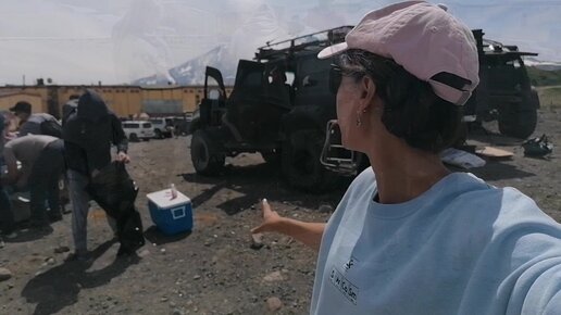 Показываю наш простой обед у подножья вулкана на Камчатке: красная икра, креветки в кляре и много рыбы.