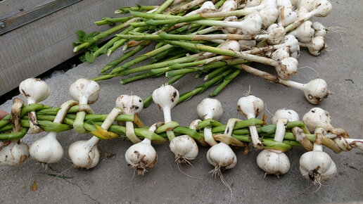 Как копаю чеснок, готовлю к хранению, заплетая в красивые косы