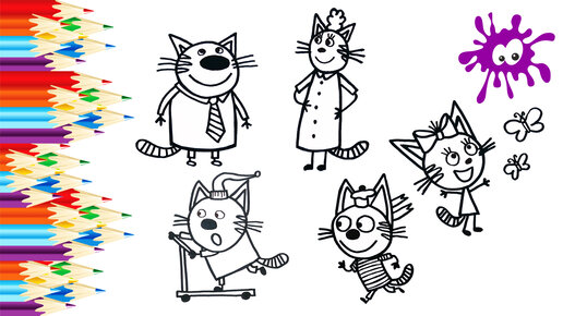 Как нарисовать героев мультика Три кота / Рисунок раскраска для детей