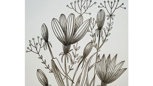 🌿Стилизованные цветы нарисованные линером и угольным карандашом🖍🖍