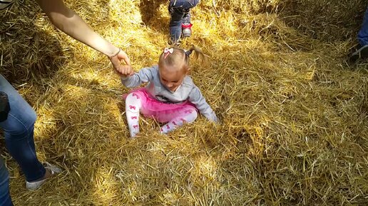Дети прыгают в сено в парке ДИНАМО г.Воронеж