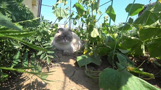 Котик Кевин Фадеев ждет, когда же упадет огурчик