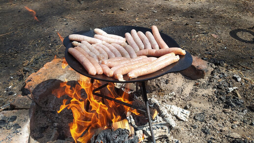 Эстетика лесной кухни на костре. Готовлю ассорти из баварских колбасок с ароматом дыма для большой компании