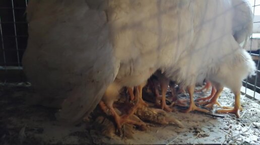 Деревенский будний день. Хорошо, когда есть куда спрятаться цыпленку, вот только лапки торчат. Наблюдаю и умиляюсь :)