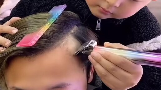 Малыш крутой стилист парикмахер, мне кажется некоторым мастерам стоит подучиться у него.