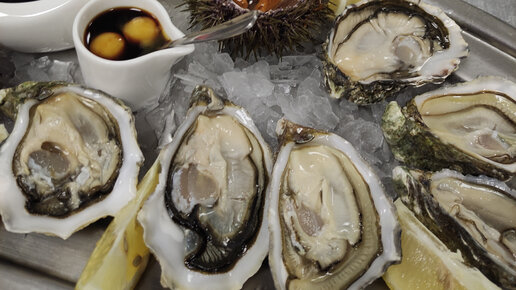 Открываю устрицы "Желардо" И "Розовая Джолли" Парочка ежей и кровавая Анадара