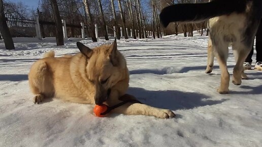 Как щену Дарику отобрать свой мячик у чужой собаки. Может, поцеловать?