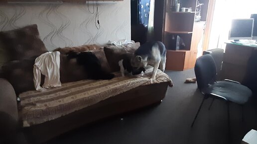 Щен Дар скакнул на диван, а это нельзя!