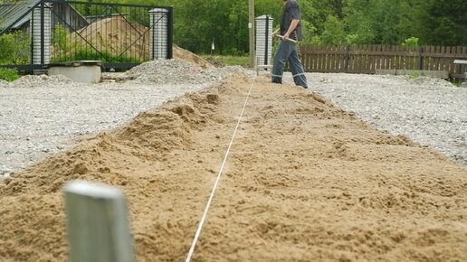 Как отсыпать подушку под фундамент ровно с помощью верёвки