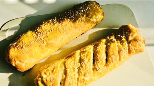 Когда гости в пути готовлю к чаю такой пирог из слоёного теста.