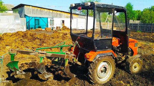 Вспашка огорода минитрактором Уралец 180 трех корпусным плугом -1l-320