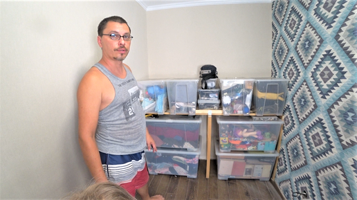 Сделал сам. Стеллаж в гостевой с коробками Икея. Первая полка из пяти реек готова.