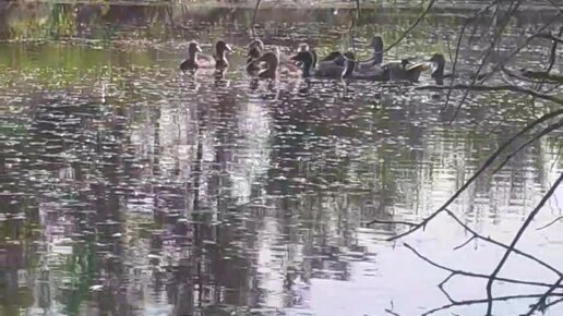 Уточки в деревенском пруду.